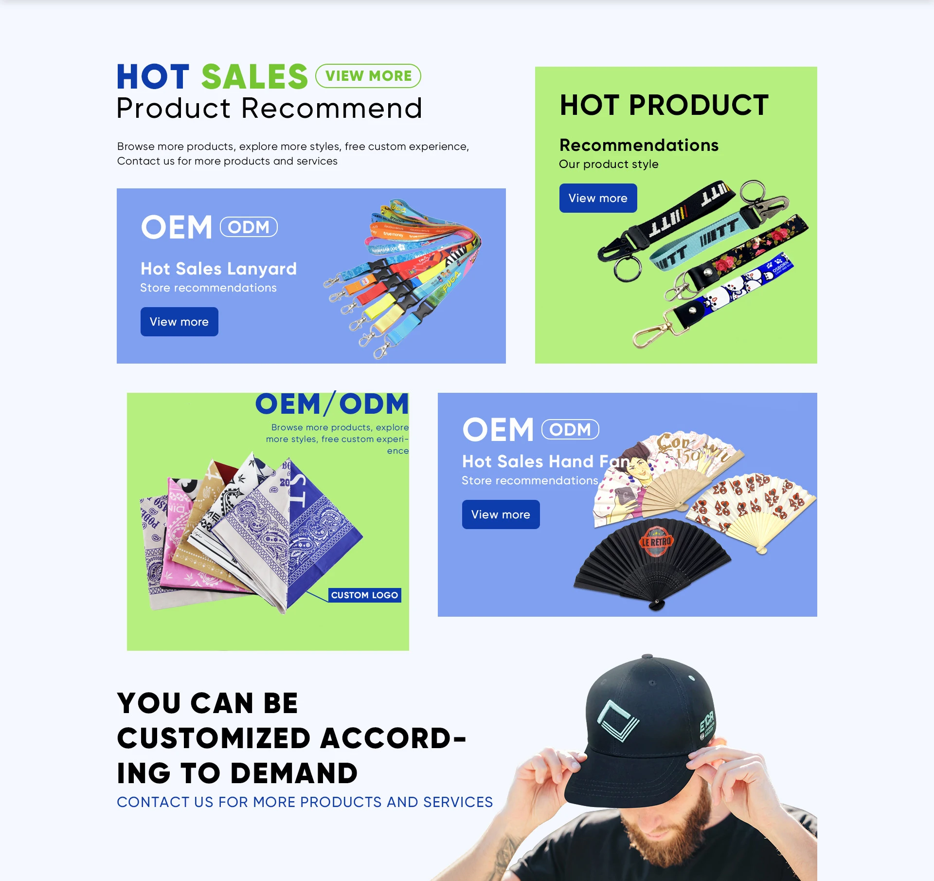 Productos principales:Cordón, llavero de PVC, pañuelo, bolsa de compras, gorra de béisbol